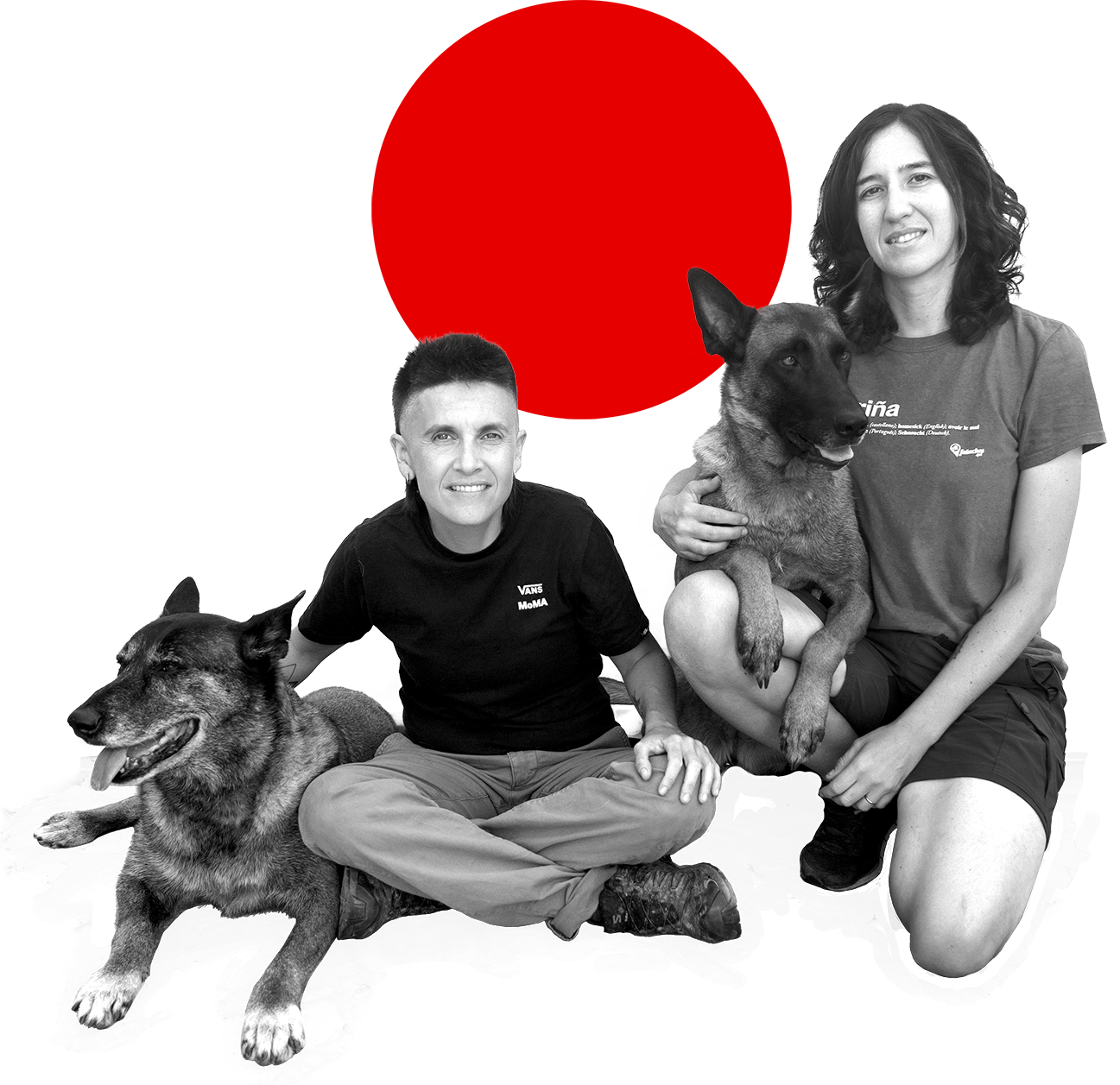Contamos además con la extensa experiencia de nuestras perras, que nos acompañan en nuestros procesos de estudio, nos eseñan cómo comunicarnos mejor y, lo que es más importante, nos ayudan a innovar en nuestras estrategias para obtener mejores resultados.